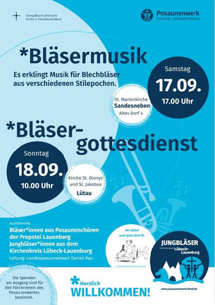Die Zeit bis zum Konzert in der Gemeindekirche um 17.00 Uhr verging schnell. Das Konzert mit sehr unterschiedlichen Stilrichtungen war für alle Beteiligten - für die Jungbläser und die erfahrenen Bläser, wie auch für die Zuhörer - ein schönes Erlebnis und so die perfekte Werbung für das nachfolgende Jungbläserprojekt zur Gründung eines Posaunenchores in Sandesneben. Dem Beifall der Zuhörerinnen und Zuhörer folgte eine Zugabe, in welcher alle noch einmal richtig ihr Instrument zum singen und klingen brachten.